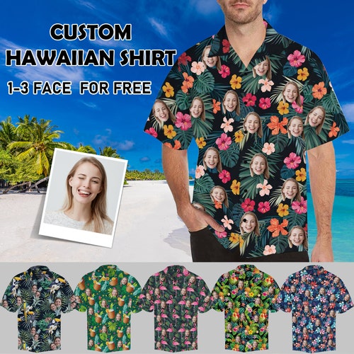 Custom Face Hawaiian Shirt Personalized Photo Flower Print Etsy New Zealand